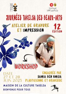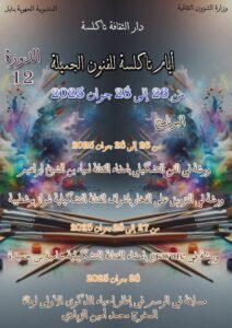 تنظم دار الثقافة تاكلسة تحت اشراف المندوبية الجهوية بنابل الدورة 12 لايام تاكلسة للفنون الجميلة تظاهرة تعنى بالفنون الجميلة في مختلف أنماطه في شكل ورشات تاطير عدد من الفنانين التشكليين بالجهة :