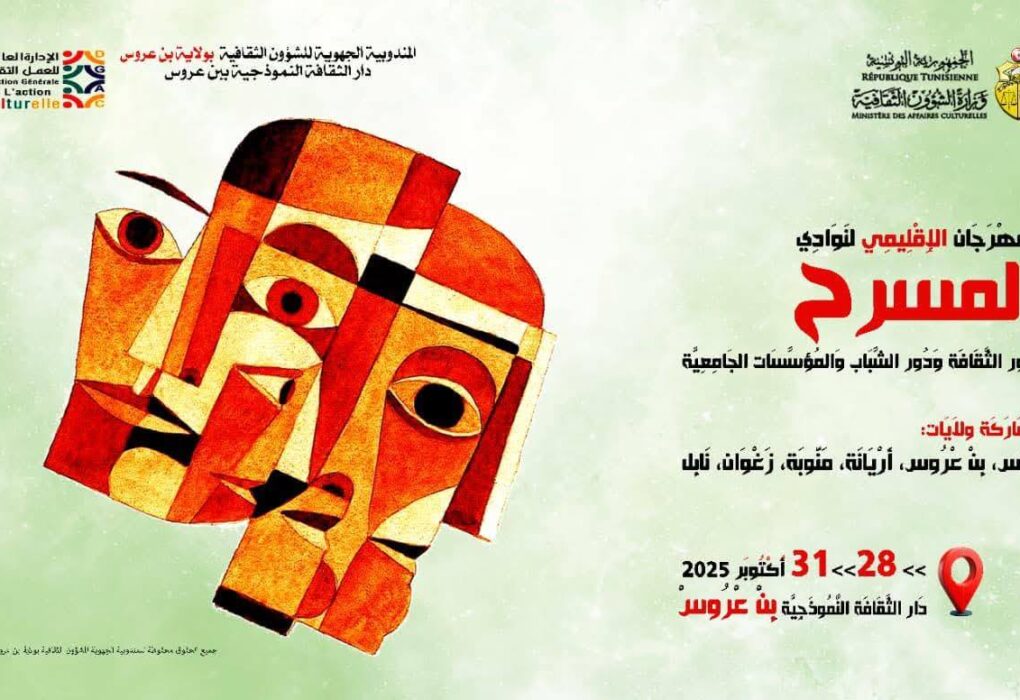 #دار الثقافة حسن الزقلي بقربة و دار الثقافة نورالدين صمود بقليبية و دار الثقافة تاكلسة ضمن المتسابقين في المهرجان الاقليمي لنوادي المسرح بدور الثقافة و دور الشباب و المؤسسات الجامعية في دورته 36 بولاية بن عروس _28-31أكتوبر 2025