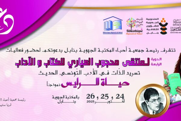 تنظم المكتبة الجهوية بنابل بالاشتراك مع جمعية أحباء المكتبة والكتاب بنابل وتحت إشراف المندوبية الجهوية للشؤون الثقافية بنابل الدورة الرابعة…
