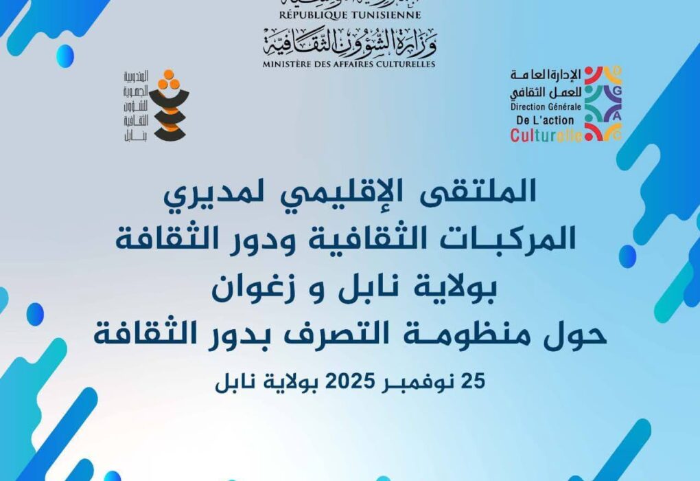 المندوبية الجهوية بنابل تستظيف الملتقى الاقليمي لمديري دور الثقافة و المركبات الثقافية ” حول منظومة التصرف بدور الثقافة “