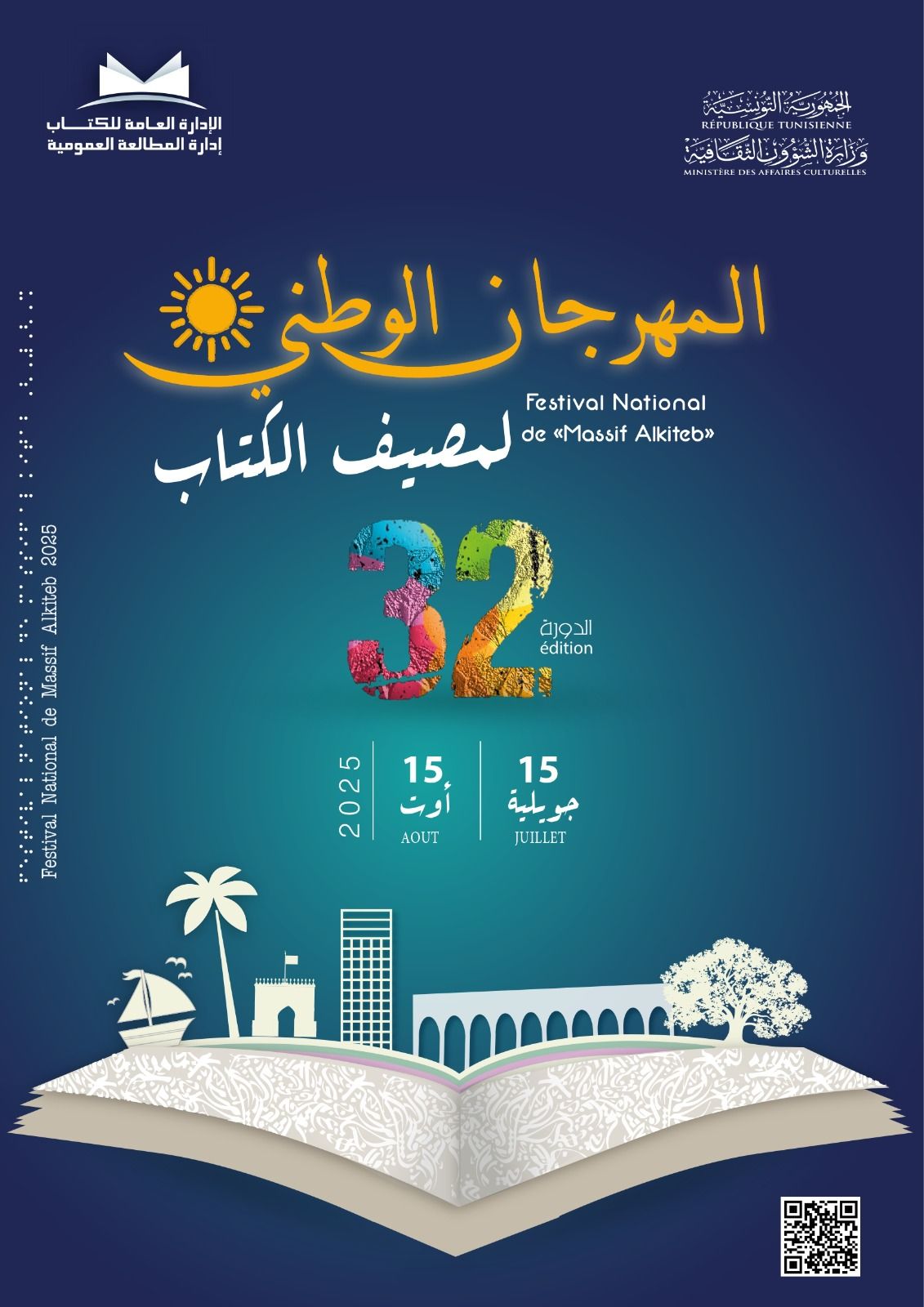 تشارك المكتبة الجهوية بنابل و كذلك شبكات المكتبات الراجعة اليها بالنظر في الدورة 32للمهرجان الوطني لمصيف الكتاب من 15جويلية الى 15أوت 2025 و هو من تنظيم إدارة المطالعة العمومية بالإدارة العامة للكتاب.