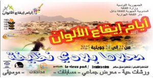 بدعم من المندوبية الجهوية للشؤون الثقافية بنابل تنظم دار الثقافة الهوارية بالشراكة مع جمعية منتدى هرماية الدورة 12 لأيام “إيقاع الألوان “من 22 إلى 24 جويلية 2025.